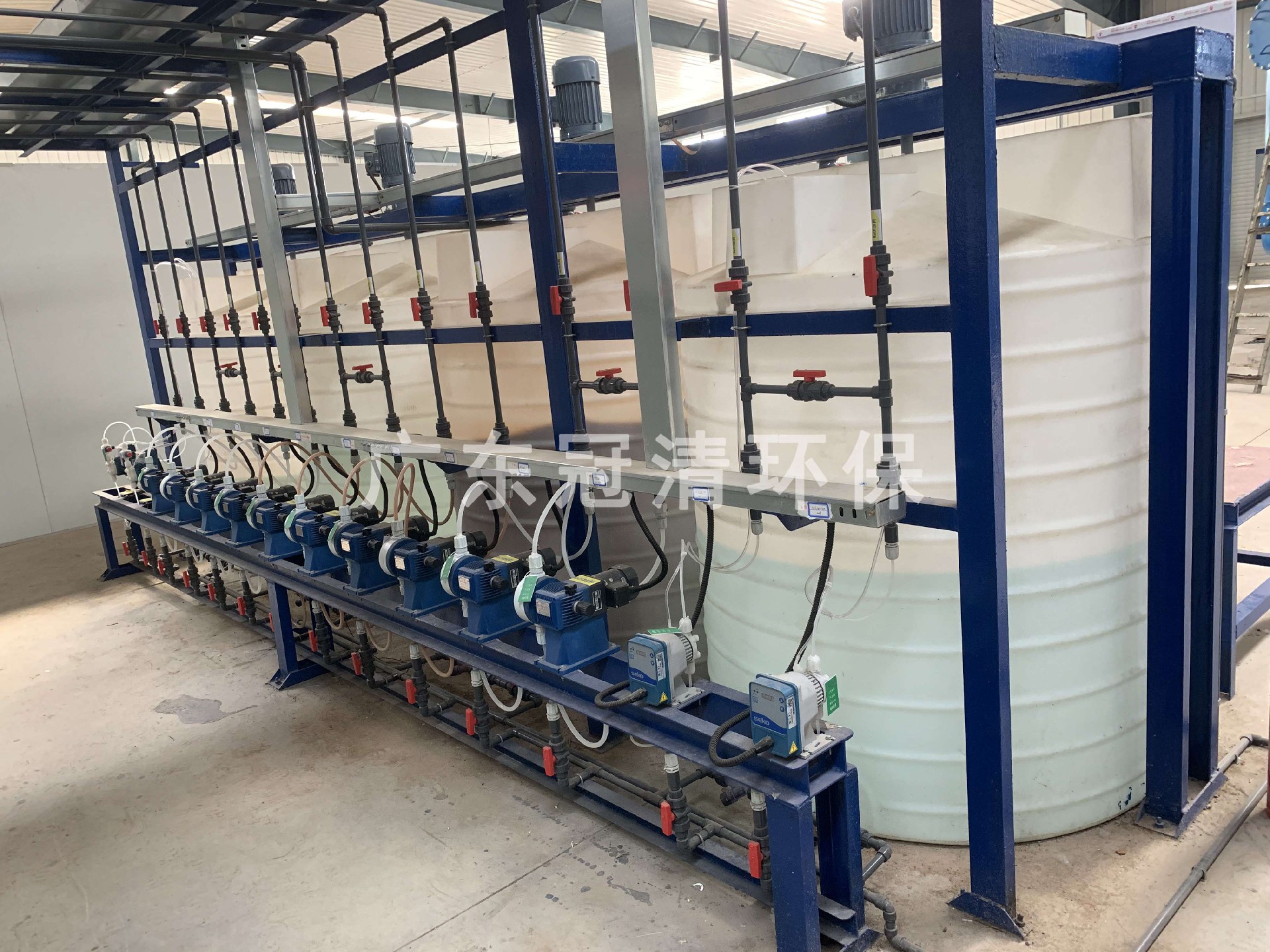 3. 控制系统:用于控制加药泵的运行,根据污水的水质和处理要求,自动调节药剂的加入量。